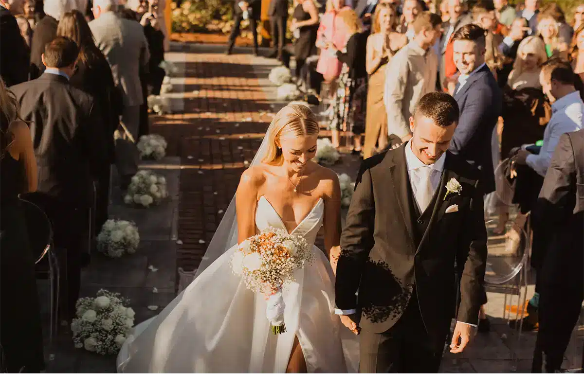 Romantic and intimate, framed by flowering gardens, wooden arches, and classic stonework — perfect for year-round ceremonies.