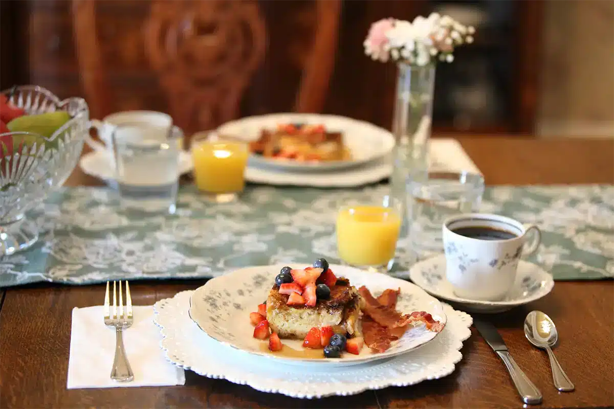 Wake up to the smell of coffee, warm sun poking in, and a gourmet plated breakfast made just for you and your guests. With our rotating favorites — and the option to help pick your menu with a house buyout — breakfast becomes one more moment to share together during your stay.